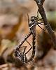 Bluet (sp unknown), male-female pair entangled in spider web